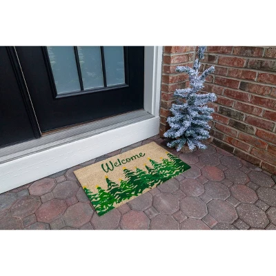 Festive fir trees all in a row, each topped by a star beneath a welcoming greeting, provide an elegant and heartfelt way to celebrate the holiday season at your door. This Entryways Sweet Home Collection doormat measures 17″ by 28″ and is 1/2″ thick. It’s crafted from the highest quality all-natural coir and hand-stenciled with eco-friendly dyes for long-lasting vibrance. This mat also has a PVC backing.