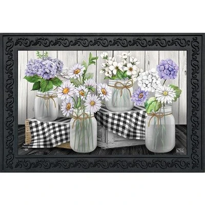 Briarwood Lane Checkered Mason Jars Spring Doormat Daisies Floral Indoor Outdoor 30″ X 18″