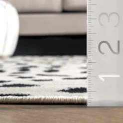 This rug champions modern living through a tasteful juxtaposition of neutrals and animal print. YouÂ’ll appreciate the subtle hints of detail that will have you taking more than one glance at your new rug. Machine made of polypropylene, a durable fiber that resists stains and fading. A rug pad is recommended to prevent slipping and to keep the rug lying flat in one place.