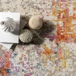 Make a bold statement with this abstract area rug. With a vibrant array of colors, this floor covering will pair perfectly with any décor from modern to bohemian. Each piece is machine made in Turkey of polypropylene, a surprisingly soft and durable fiber that will last for years to come. Create the home you’ve always envisioned with our easy to care for and pet-friendly area rugs.