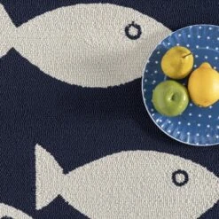 - Crafted of durable synthetic fibers, this versatile rug elevates decks, patios and porches while seamlessly matching outdoor furniture of any style
