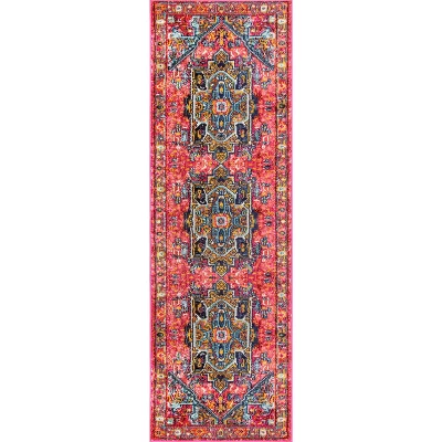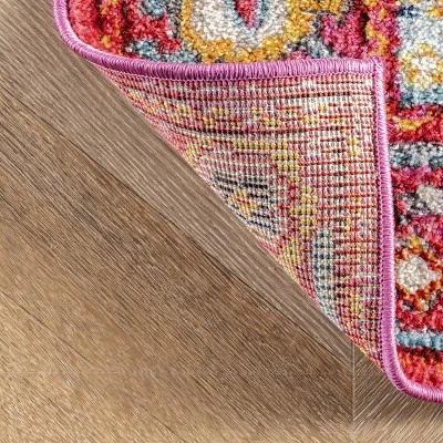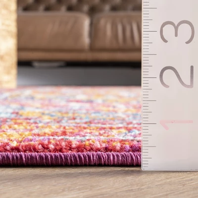 This unique medallion rug is the perfect addition to any space in need of a vibrant pop. Power-loomed from soft synthetic materials this rug is soft to touch and built to last.
