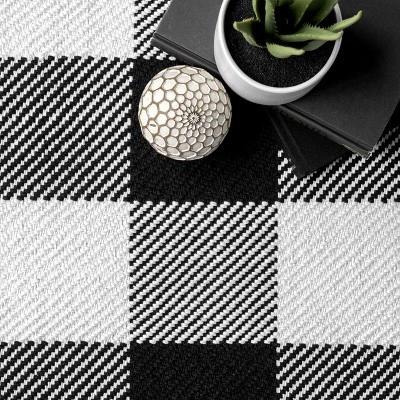 Who doesnÂ’t love a touch of buffalo plaid? This timeless pattern will stand out with its contrasting black and white checkered design and will pair perfectly with any farmhouse or rustic descor. This 100% cotton flatweave rug is the perfect lightweight floor covering that is perfect for any space in your home. Kick back and relax with our easy to care for and pet-friendly area rugs.