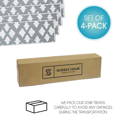 SussexHome Floral Design Cotton Anti-Slip Stair Treads, 9” X 28“