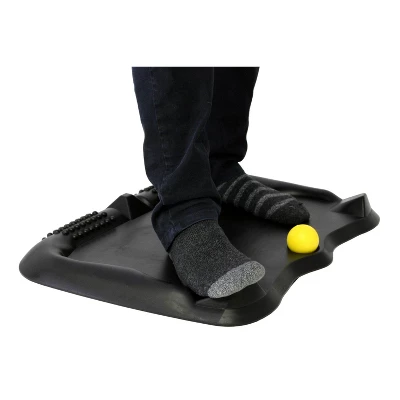The MTOPO Topographical Anti-Fatigue Mat is designed to work in tandem with standing desk risers, like the Rocelco ADR, DADR, EADR, CADR and MSD series. It will help support your back, hips, knees and feet so you can get all the benefits of standing while you work. The Topographical edges and foam ball allow you to work your toes and activate your core muscles. This versatile desk mat effectively “reduces” your weight by 30% to make standing easier on your feet and joints. The advanced 100% polyurethane construction offers a comfortable top surface and a non-slip bottom. A perfect 25″ x 19″ size provides plenty of room to move around, but still can fit into the kneehole of a standard desk or built-in when it is not being used. Commercial grade thickness provides hours of comfort and stability. The durable materials on this desk mat will not break down, even after years of use.